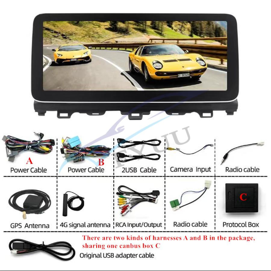 Accessories | -1 x Car Radio Stereo With Frame -1 x GPS Cable -2 x USB Cable -1 x Orignal USB Adapter Cable -2 x Original Power Cable -1 x Canbus Decoder Box -1 x RCA/4G Cable -1 x Camera Input Cable -1 x Radio Adapter -1 x 4G antenna -1 x Radio Cable -1 x user 's manua |