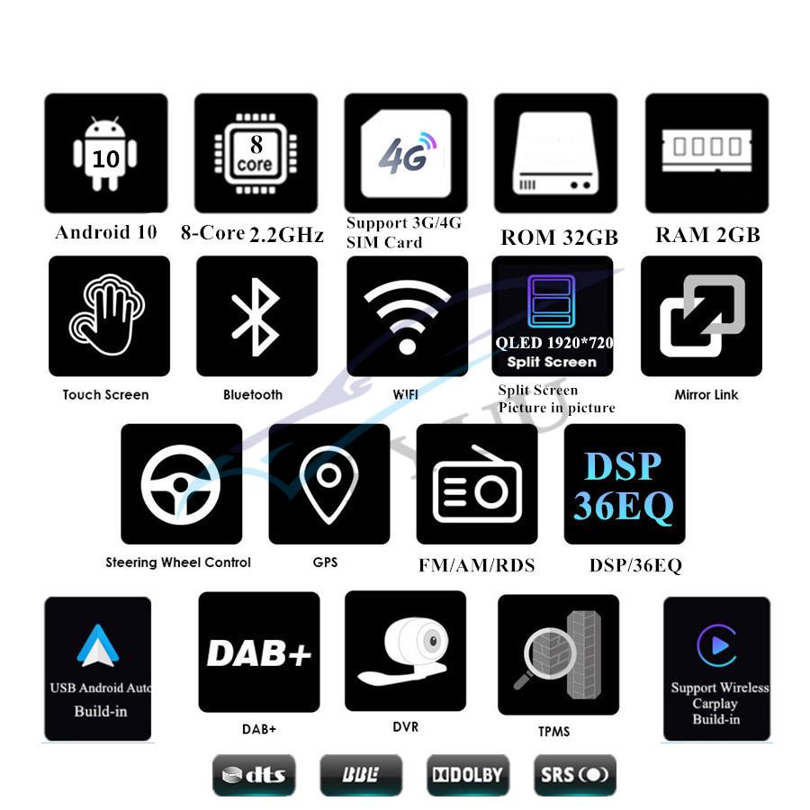 | Support Carplay/Android Auto | -Build-In Support WIFI Wireless / USB Wired Carplay And USB Wired Android Auto. |