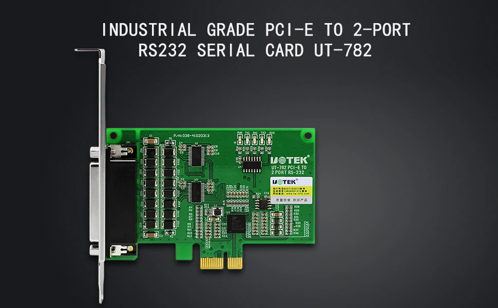 UOTEK Industrial Grade PCI-E to RS-232 Serial Card PCIE to RS232 2 Ports High Speed DR44 Converter DB9 Connector UT-782 Adapter