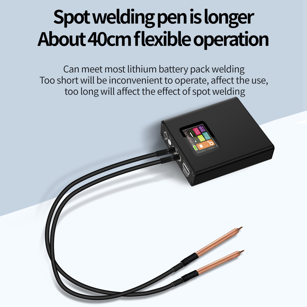 4. spot welding pen is longer than about 40cm flexible operation, can meet most of the lithium battery pack welding, too short will be inconvenient operation, affect the use, too long will affect the spot welding effect.
