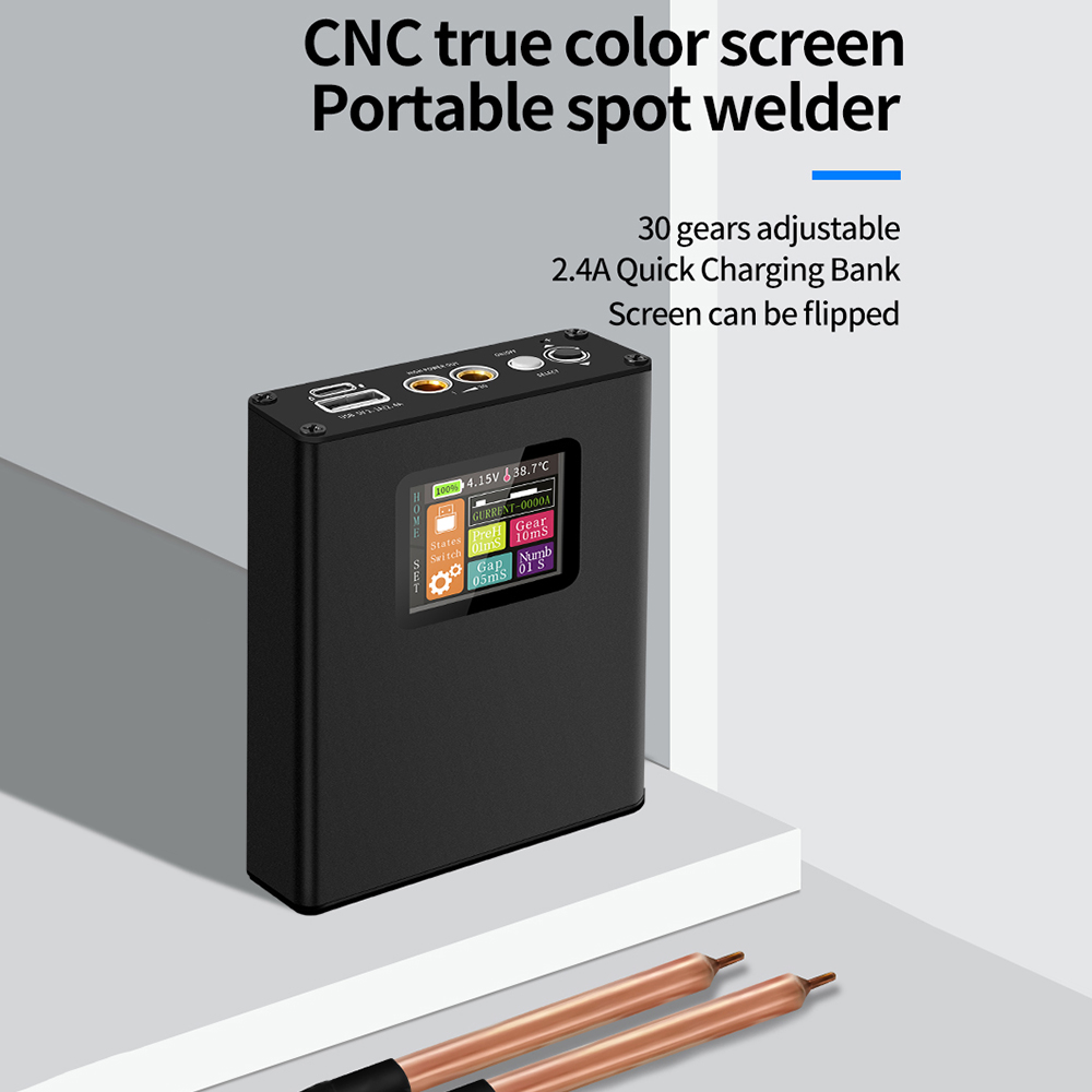 3.-Machine dual-use, convenient spot welder is also a rechargeable USB2.4A output, it is also your portable fast-charging rechargeable;.