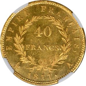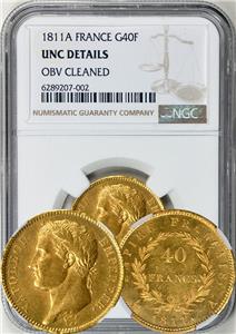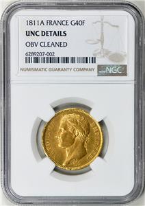 France 1811A Gold 40 Francs graded by NGC as UNC DTLS.