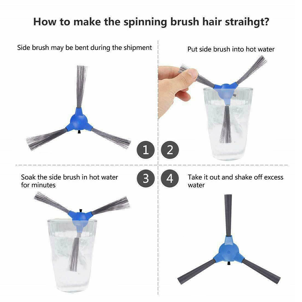 -Quality is above everything else, our powerful and quiet roller brush and cleaning tools no longer need to worry about your robovac getting stuck in your hair. Our side bristles are made of high quality rubber and are designed to be more durable than our competitors. If a bent or curled side brush is received due to rough transport, restoring it only requires soaking in warm water for 15 seconds