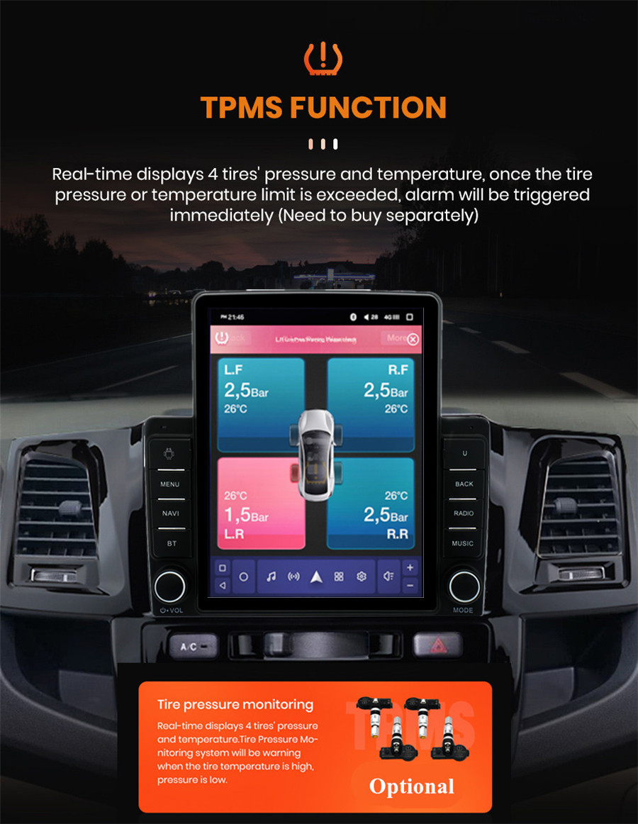 Additional | - Textbook: Could change font, font color, background color, bookmark, reading E-book while listening music - Photo Viewer: Support JPS, BMP, PNG, GIF etc. format. play by revolve, Powerpoint Support 4096*4096 Pixels - Wallpapers: 5 live wallpapers, 17 standard wallpapers, support DIY wallpaper from Gallery - APK Installer: Support Android Package installer - 7 Colors Button adjustable - Support Mirror Link function: Yes, support WIFI/USB screen mirroring from iPhone and android smartphone - Support TPMS: YES (Not Included) -Support Steering Wheel Control;Yes |