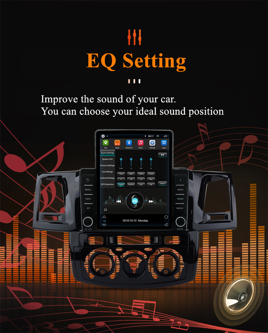 Setup | - WiFi/Hotspot/Bluetooth: Yes - Brightness level adjustable: Yes - Wallpaper: Wallpapers/Live Wallpapers/Gallery - Sound: Key Tone & Volume - Storage: Display Internal Storage/Nand Flash/Connected Device Storage - Apps: Running Apps display/force stop/uninstall - Security: Yes - Accounts: Yes - Languages and Input: more than 70 Languages and choose input method - Backup and Reset: Yes - Date and Time: Setting Date&Time by yourself or choose GPS/network-provided time - Accessibility: Yes - GPS: Yes, GPS application options/monitoring/sound mode/mixing ratio - Driving safety: Watching Video, Reversing X-mirror/Volume, Reversing Trajectory/radar Display, Rear view ruler - Amplifier: Rock/Pop/Jazz/Classic/Flat/Voice/Custom - Steering Wheel Control: Yes - About Device: Display Parameter Info. |