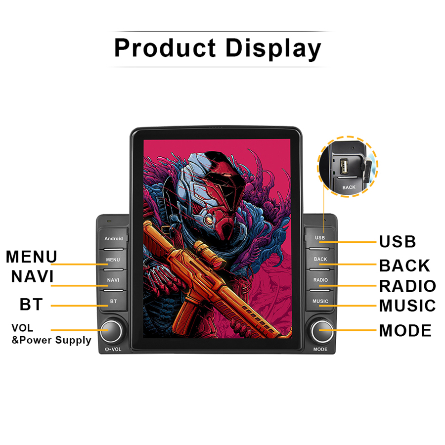 General | - Power Supply: DC 12V (allowance range: 10.8-14.5V) - Max. Current: 10A - Screen Size: 9.5inch - Front panel Size: As picture show |
