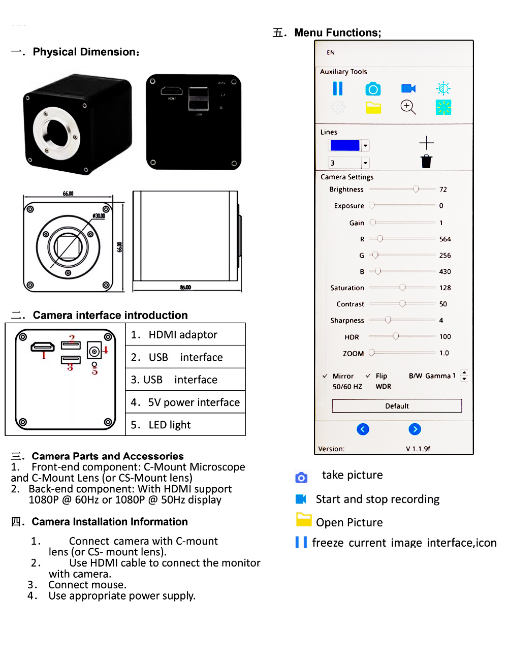 - Industry Cmos Camera. It can Show the live image directly on any HDMI monitor , Projector or TV.