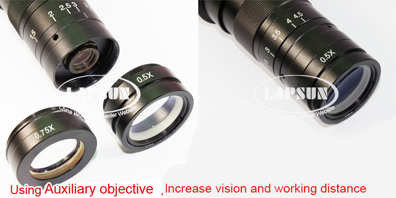 - Objective Magnification Power by 0.7 - 4.5X(about 10 - 180X on the display)