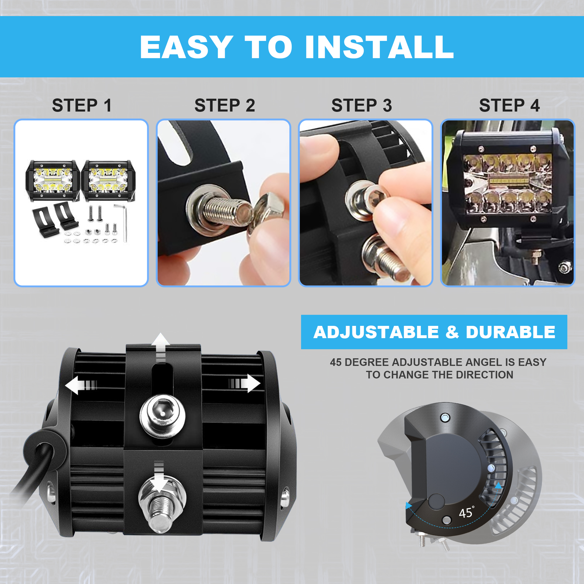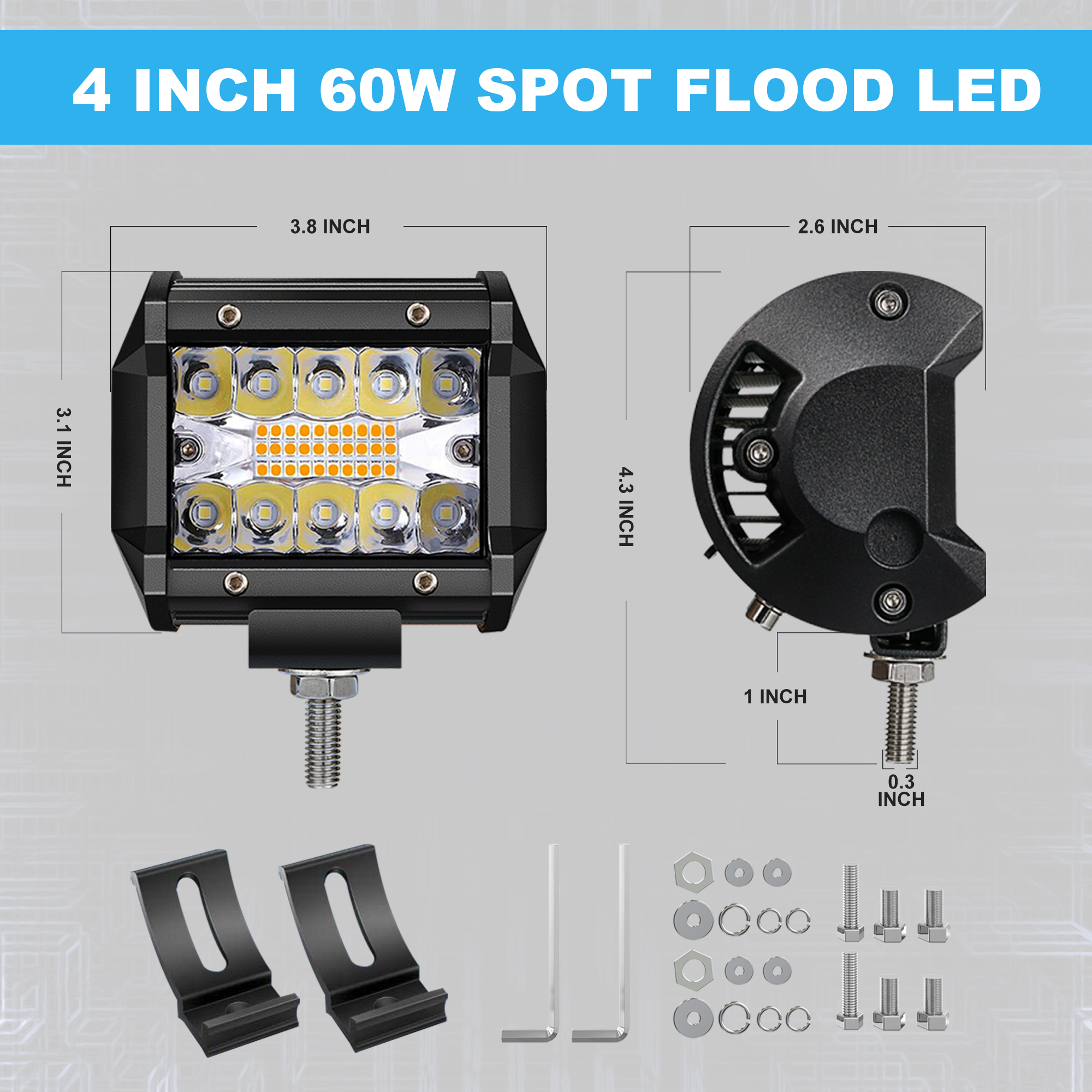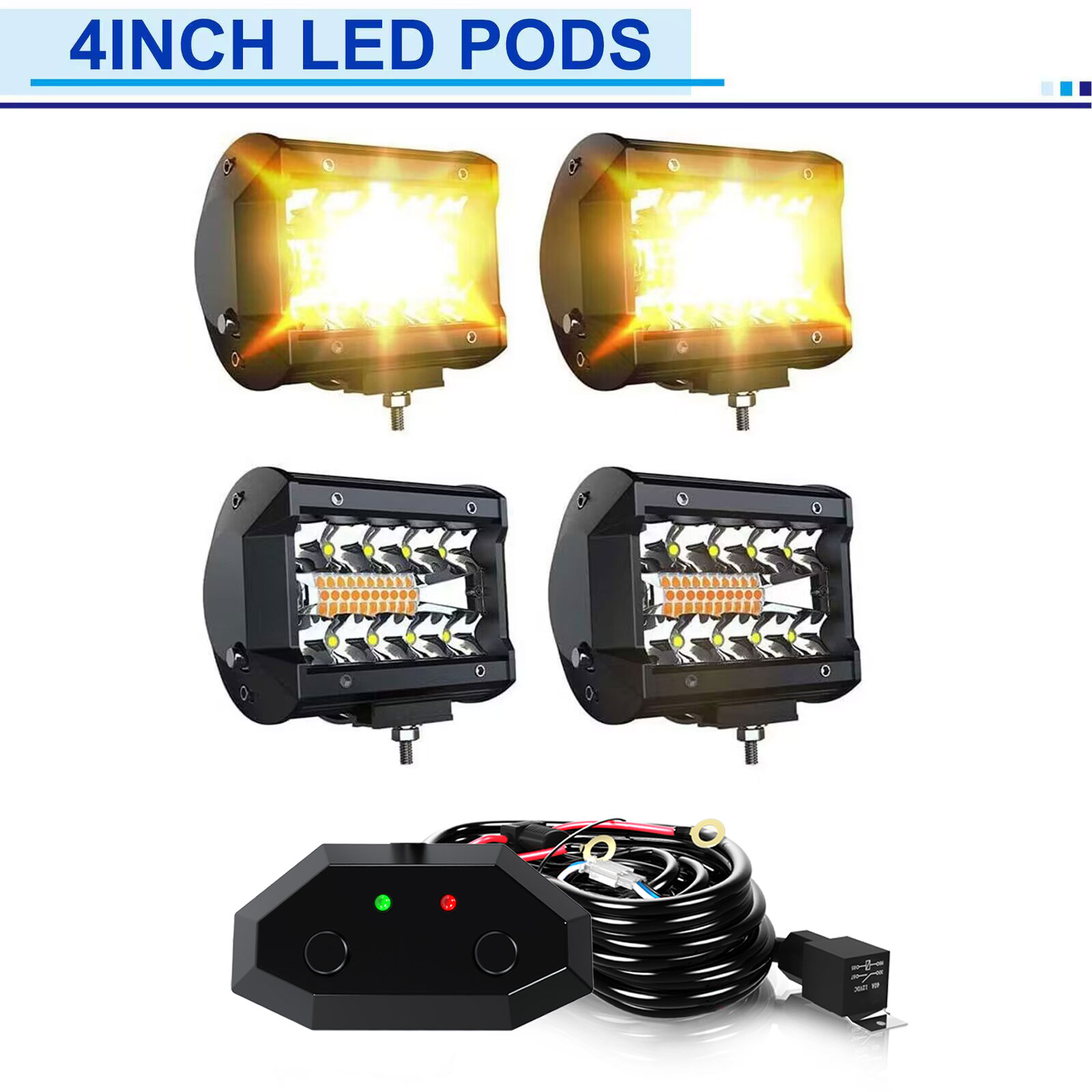 4x 4inch led cube pods,1x wiring harness with switch,Set Accessories.