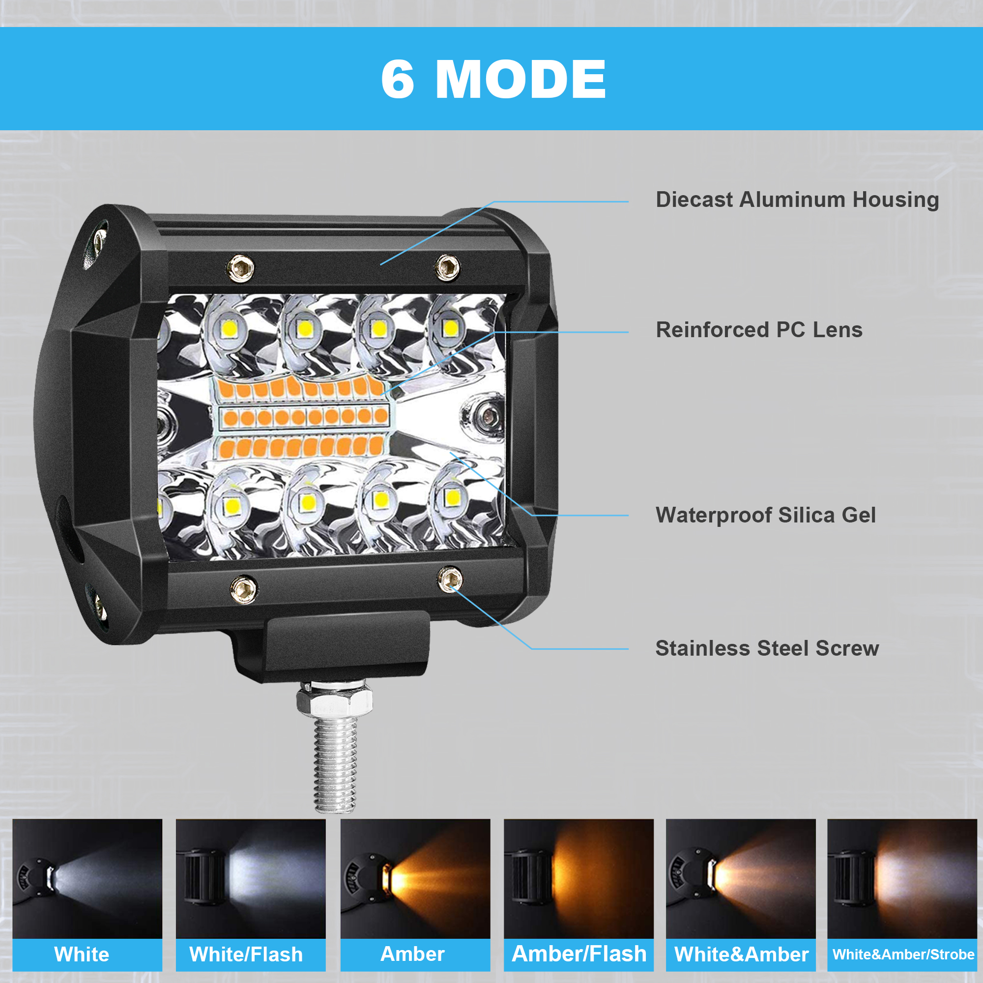 White light, amber light, white & amber light, white flash, amber flash, white & amber strobe; led light bar is prefect for snow or rain day