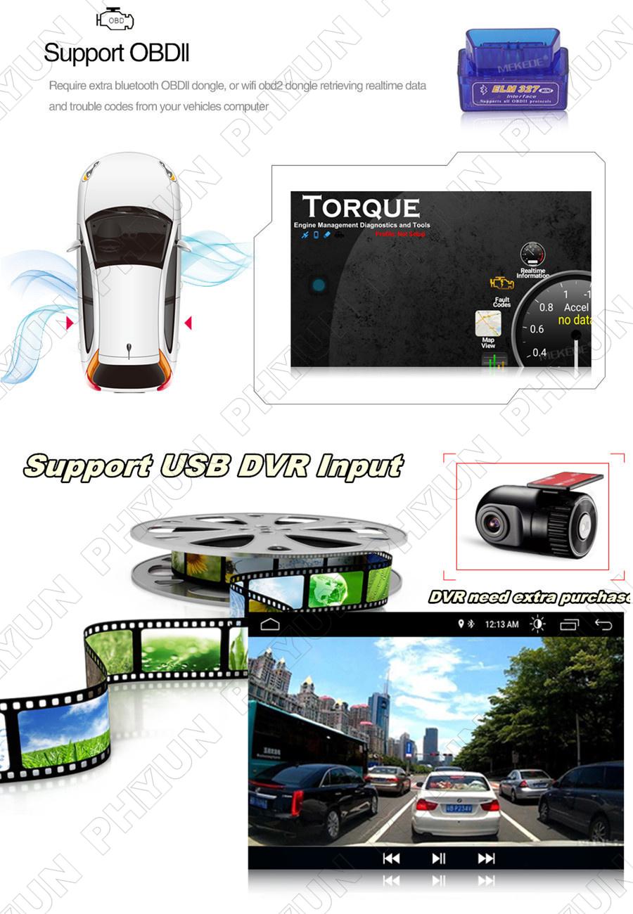 Additional | - Textbook: Could change font, font color, background color, bookmark, reading E-book while listening music - Photo Viewer: Support JPS, BMP, PNG, GIF etc. format. play by revolve, Powerpoint Support 4096*4096 Pixels - Wallpapers: live wallpapers, standard wallpapers, support DIY wallpaper from Gallery - APK Installer: Support Android Package installer - Support Torque Pro(OBD2 &Car): Yes, you can connect a Bluetooth OBD2 Scanner Tool to use this function - Support Mirror Link function: Yes, support screen mirroring from iPhone and android smartphone - Support TPMS: YES (Not Included) |