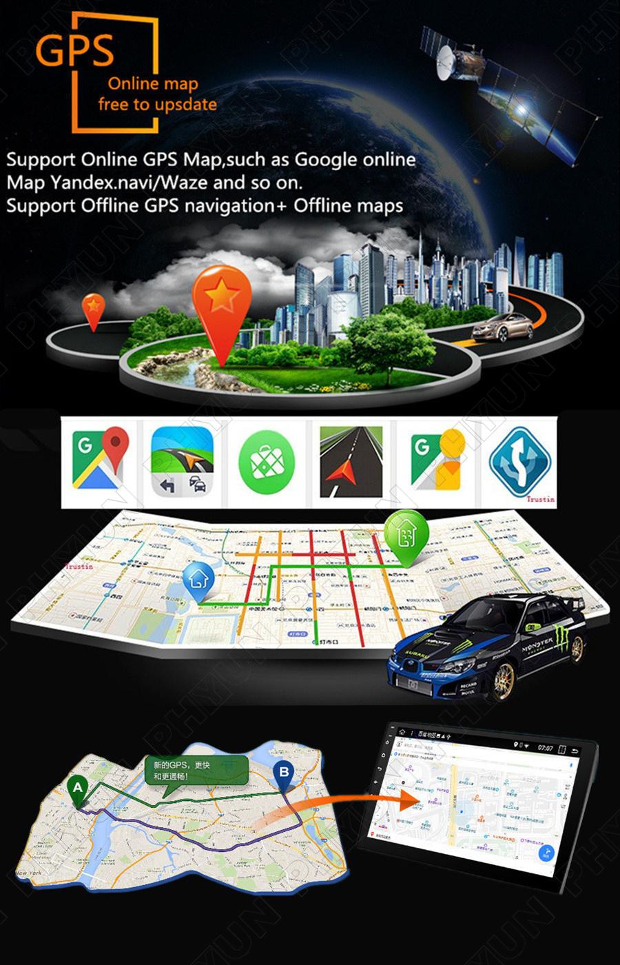 GPS | - Support Maps: IGO, Sygic, Google Map etc. - Voice Guidance: Yes - Support 2D/3D Map Views: Yes - Dual Zone: Yes, navigating while music playing - Online Navi: Yes, support google maps online navigating |
