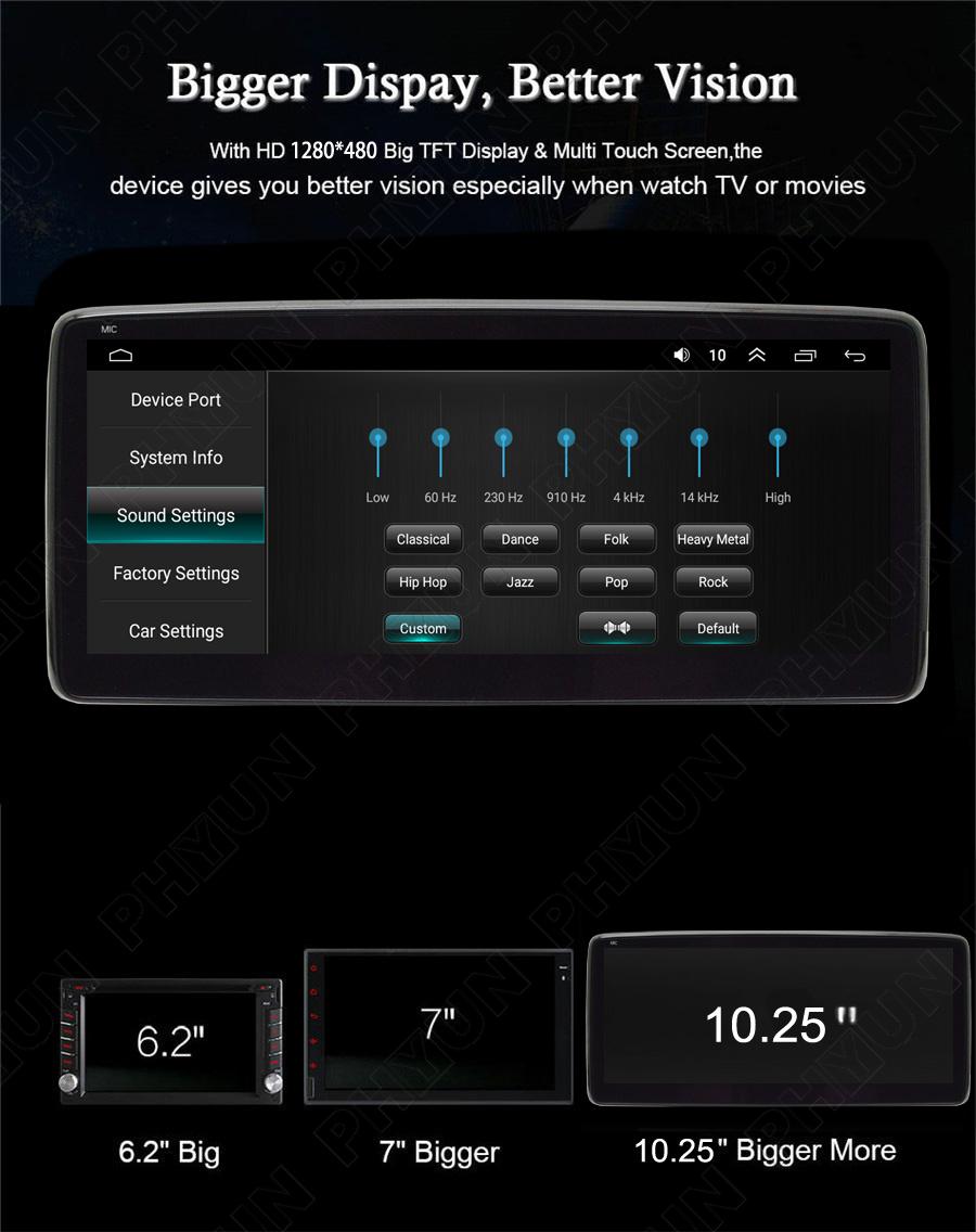 Setup | - WiFi/Hotspot/Bluetooth: Yes - Brightness level adjustable: Yes - Wallpaper: Wallpapers/Live Wallpapers/Gallery - Sound: Key Tone & Volume - Storage: Display Internal Storage/Nand Flash/Connected Device Storage - Apps: Running Apps display/force stop/uninstall - Security: Yes - Accounts: Yes - Languages and Input: more than 70 Languages and choose input method - Backup and Reset: Yes - Date and Time: Setting Date&Time by yourself or choose GPS/network-provided time - Accessibility: Yes - GPS: Yes, GPS application options/monitoring/sound mode/mixing ratio - Driving safety: Watching Video, Reversing X-mirror/Volume, Reversing Trajectory/radar Display, Rear view ruler - Amplifier: Rock/Pop/Jazz/Classic/Flat/Voice/Custom - Steering Wheel Control: Yes - About Device: Display Parameter Info. |
