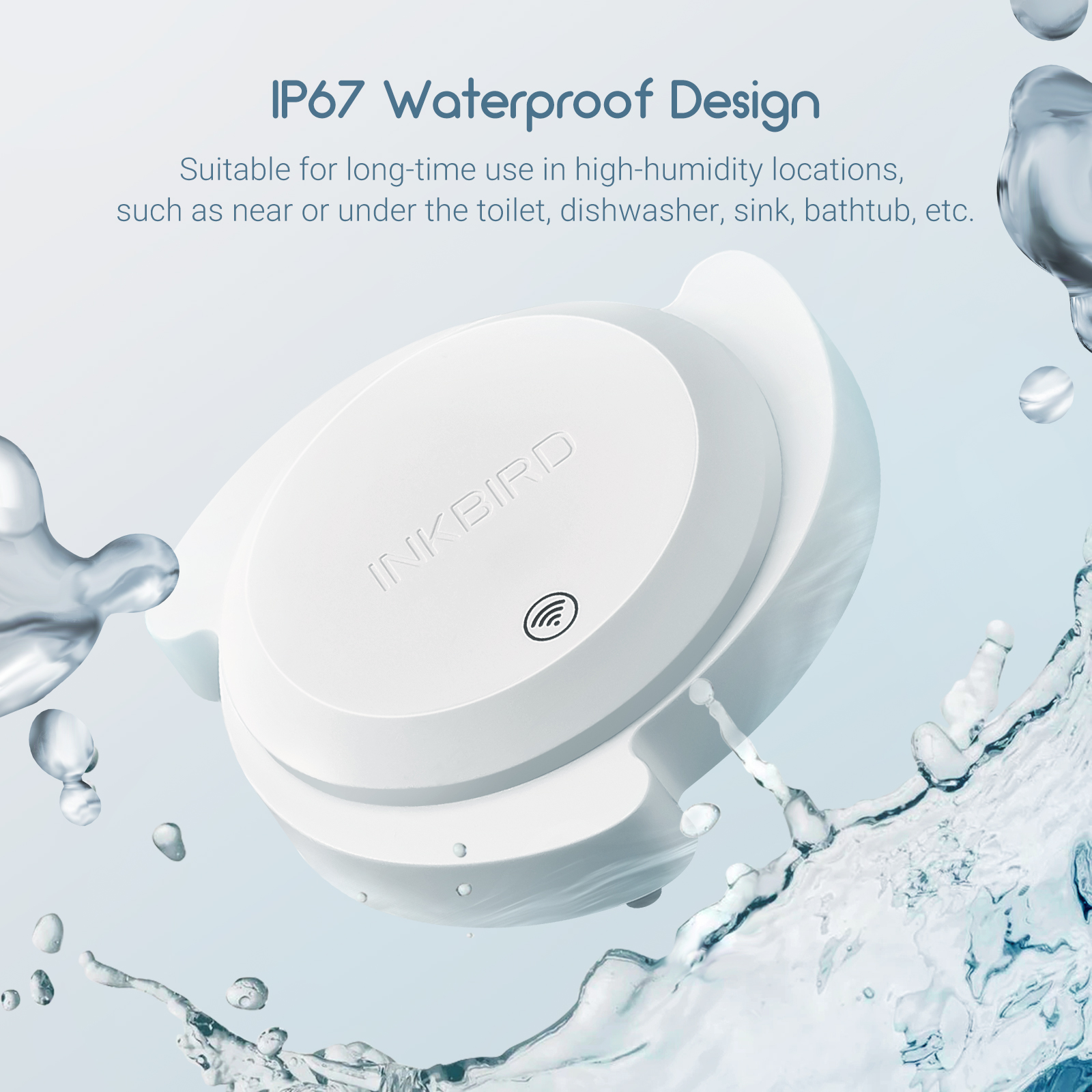 Its high-class IP67 water-resistant body is suitable for continuous use near or under a toilet, bathtub, kitchen sink, balcony, attic, or any location close to a water source.
