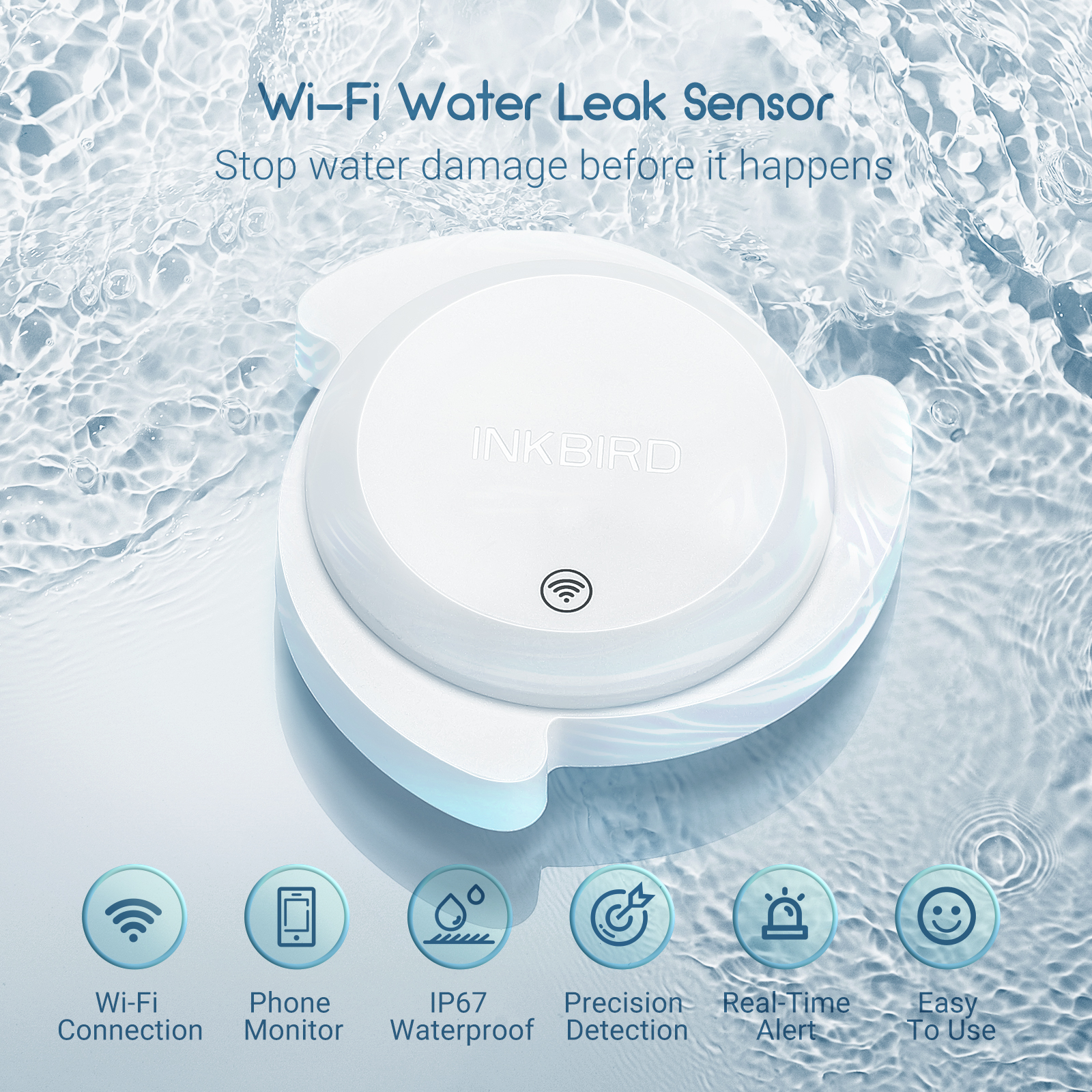 INKBIRD IWS-WD1 is a Wi-Fi-enabled water leak sensor that we can remotely monitor the water status of our house and receive alarming messages when a water leak is detected. It efficiently reminds us to take preventive actions to avoid costly water damage.