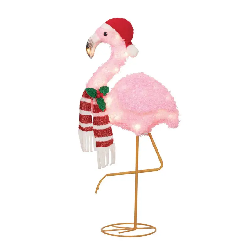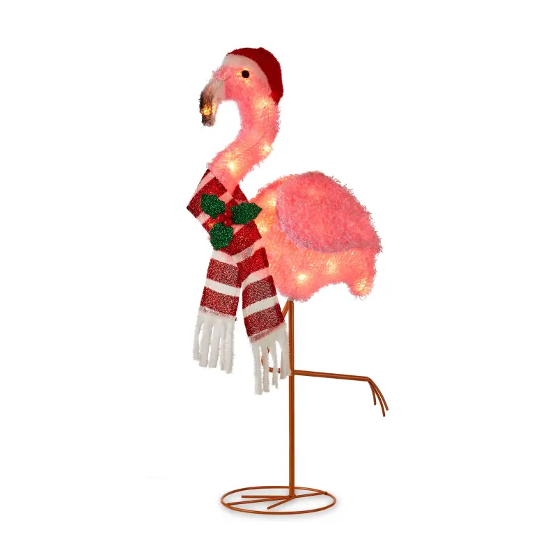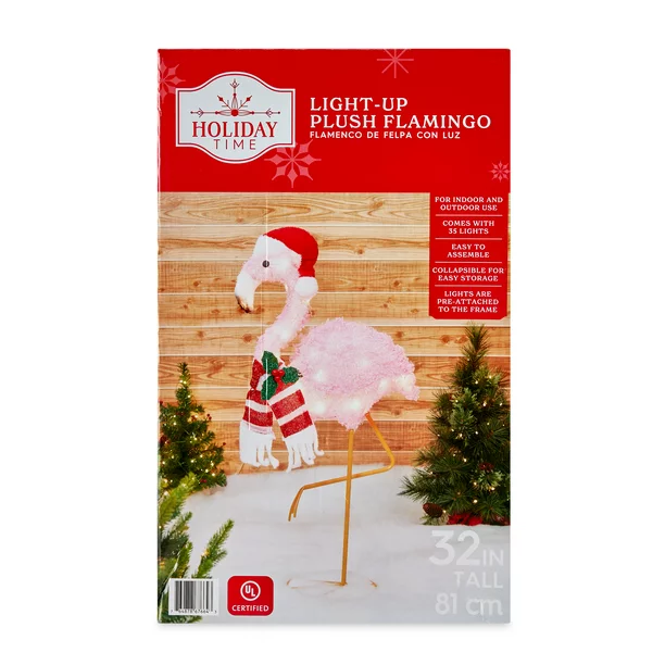 Holiday Time 32" Light-Up Fluffy Christmas Flamingo with 35 Clear Incandescent Lights: