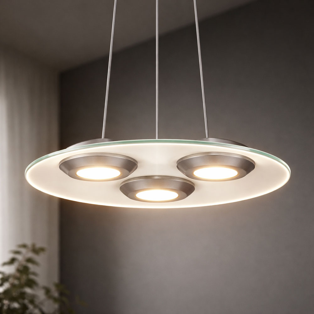 LED Decken Pendel Lampe Nickel matt Glas Beleuchtung DIMMER Schlafzimmerleuchte