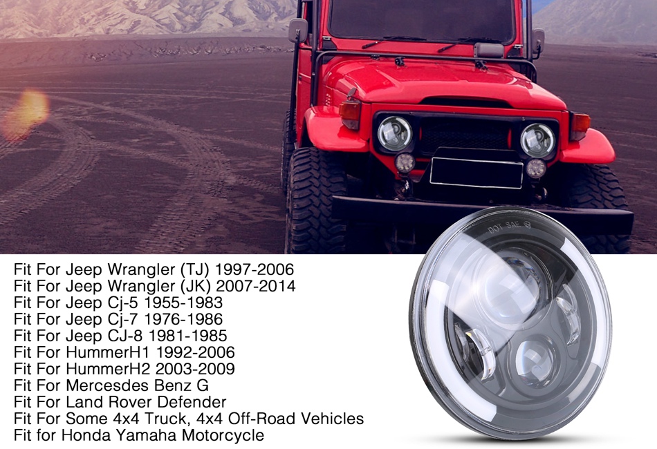 - Great Compatibility:Compatible with 12/24V vehicles,suitable for both motorcycle and car,such as Honda Yamaha motorcycle,Jeep Wrangler JK/ LJ/ CJ/ TJ including Jeep Wrangler(TJ) 1997-2006,Jeep Wrangler(JK) 2007-2014,Jeep Cj-5 1955-1983,Jeep Cj-7 1976-1986,Jeep CJ-8 1981-1985,HummerH1 1992-2006,HummerH2 2003-2009,Mercesdes Benz G,Land Rover Defender,etc..