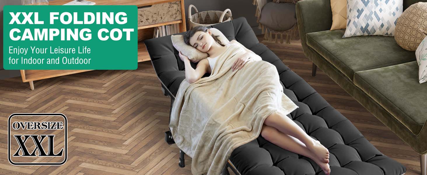 ▶【Wide Application】 Portable folding cots for indoor and outdoor use. This cot bed is not only perfect for camping, beach, patio, poolside, park, backyard, garden, campsite or other outdoor places, but also be used at home, room, office nap or guest bed.