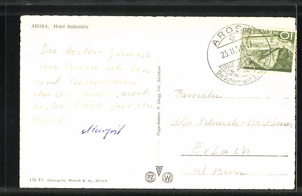 AK Arosa, Hotel Hohenfels aus der Vogelschau
