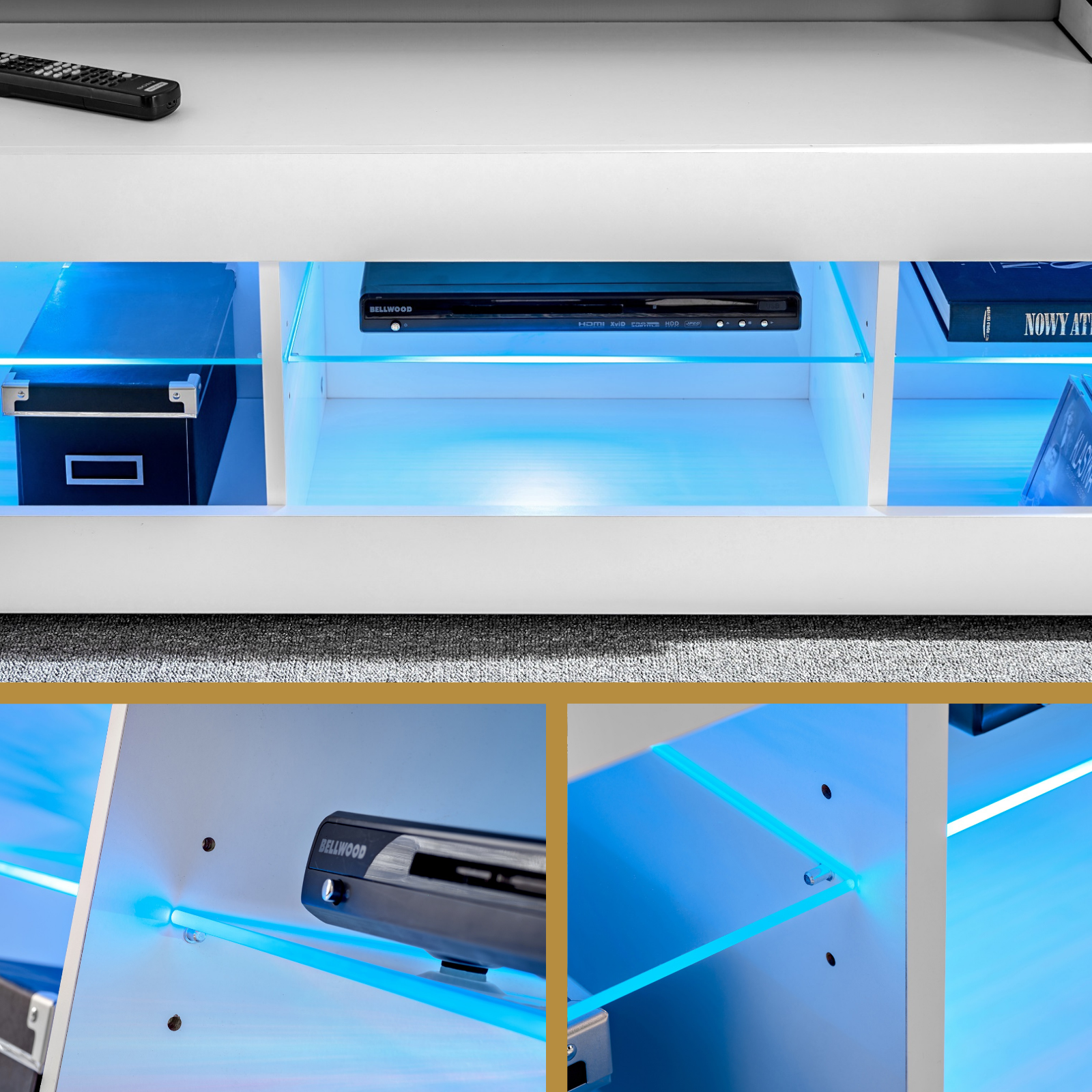 Entdecken Sie den NEU Tivoli TV Schrank, eine perfekte Verbindung aus stilvollem Design und Funktionalität. Hergestellt aus strapazierfähigen, laminierten Platten ist dieser Schrank kratzfest und leicht zu reinigen. Die eleganten Glasregale bieten Platz für Ihre Bücher, Sammelobjekte und mehr, während die optionale LED-Beleuchtung Ihrem Raum einen modernen Touch verleiht. Ideal für Wohnzimmer, Flure oder Jugendzimmer, passt Tivoli mühelos in jedes Ambiente. Die einfache Montage mit klaren Anweisungen sorgt für einen stressfreien Aufbau. Setzen Sie auf zeitlose Eleganz – Ihr neuer TV Schrank wartet!