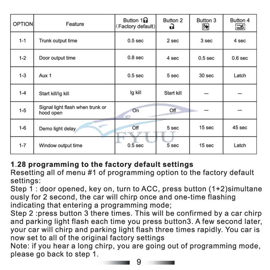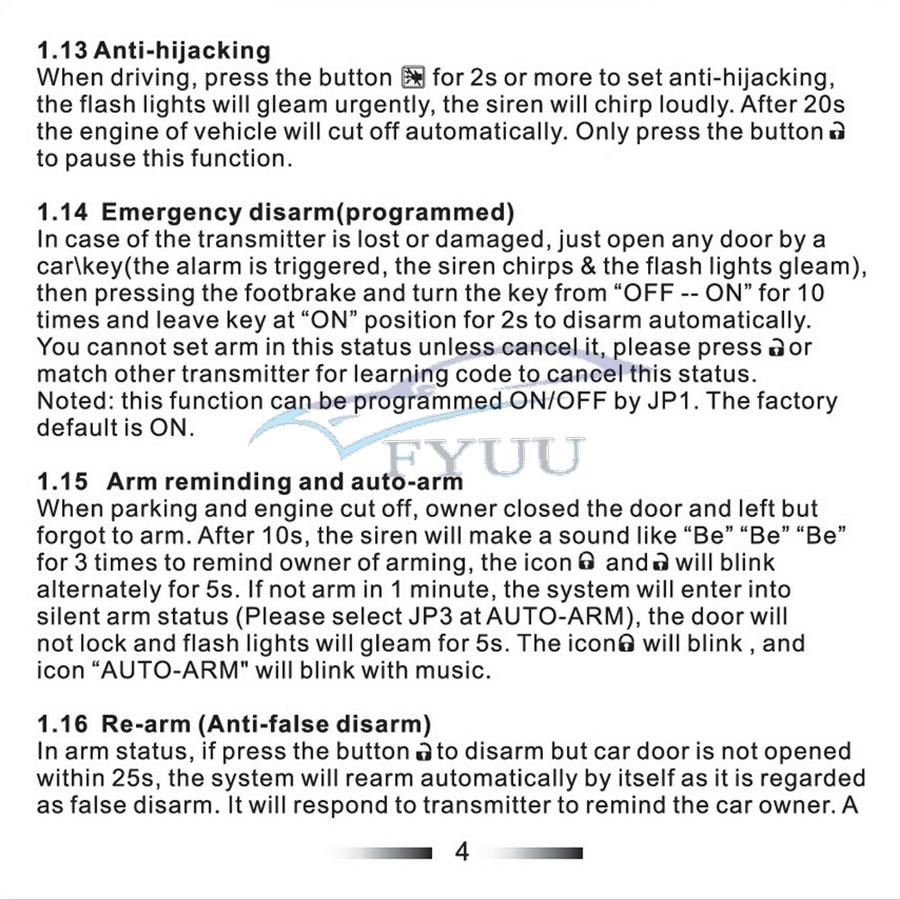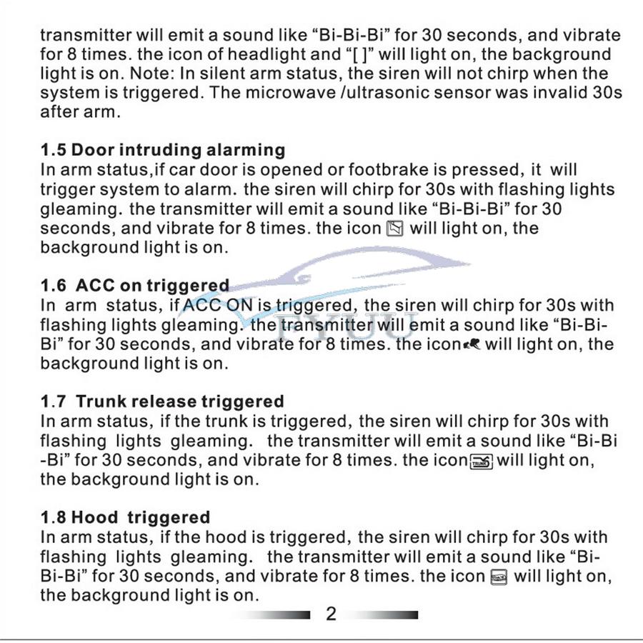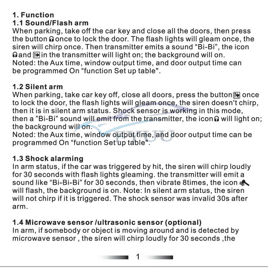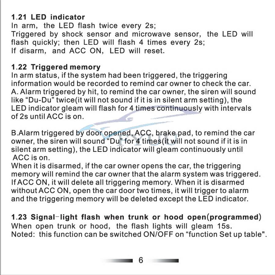 9.Shock sensor bypass programmable (activated delay)