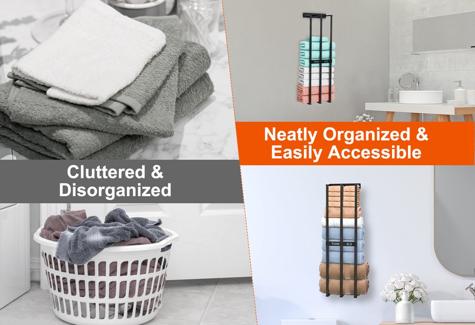 - Open Design:The open design makes it easier to grab a towel when you need it. No more fumbling through piles of towels on the floor. Besides,the logo on the rack is also eye-catching,adding a touch of spa style to your bathroom.