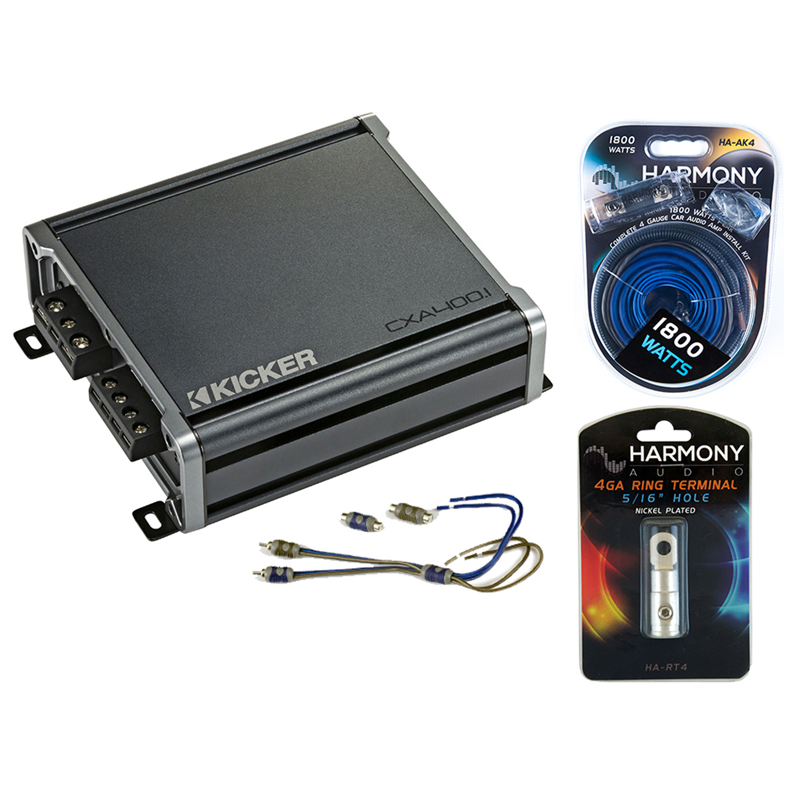 Kicker 46CXA4001 800W Sub Amp, Speaker Wire RCA Adapter & 4 Gauge Amp Kit