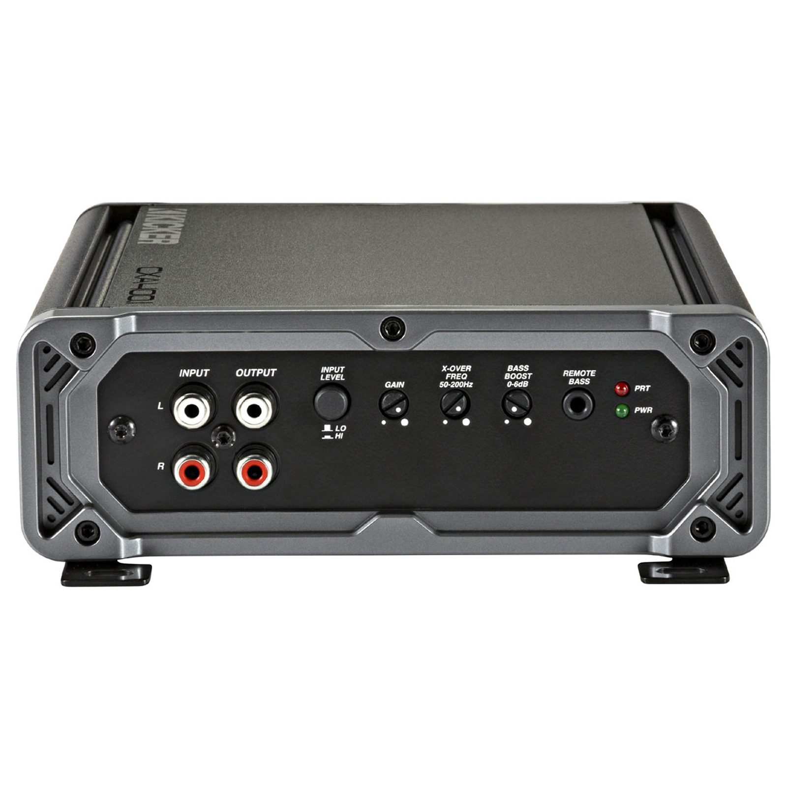 - Compatible with Kicker DX, ZX, or IX Series amps or any aftermarket amplifier equipped with RCA inputs that take high-level input signals