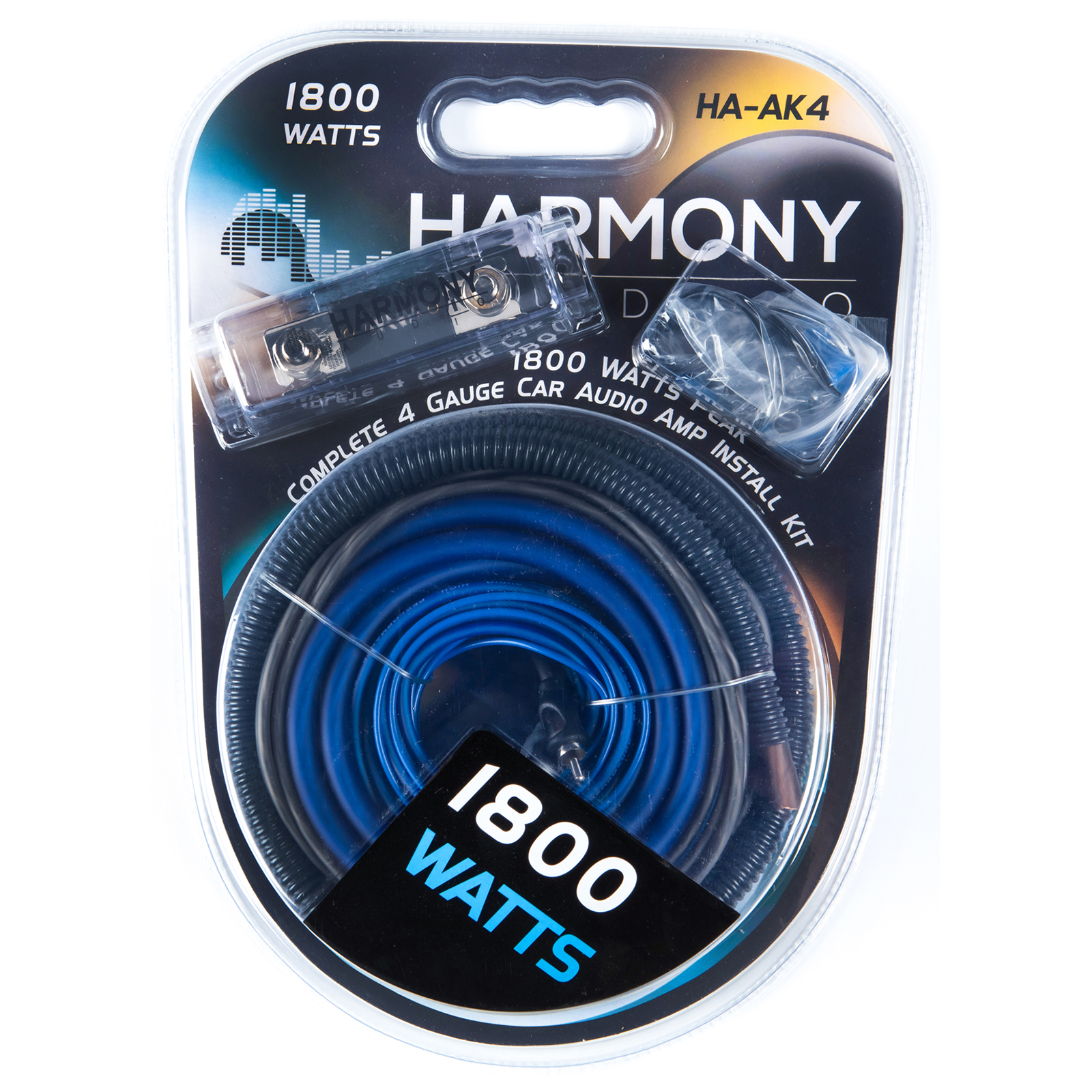- 1 x Harmony Audio HA-AK4 Car Stereo Complete 4 Gauge 1800W Amp Amplifier Install Kit - Nickel