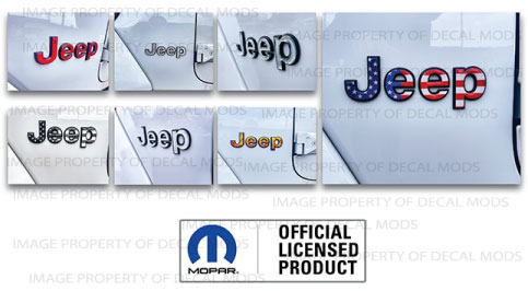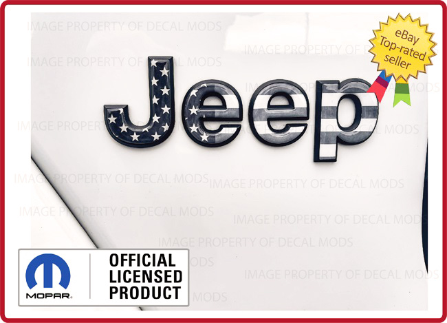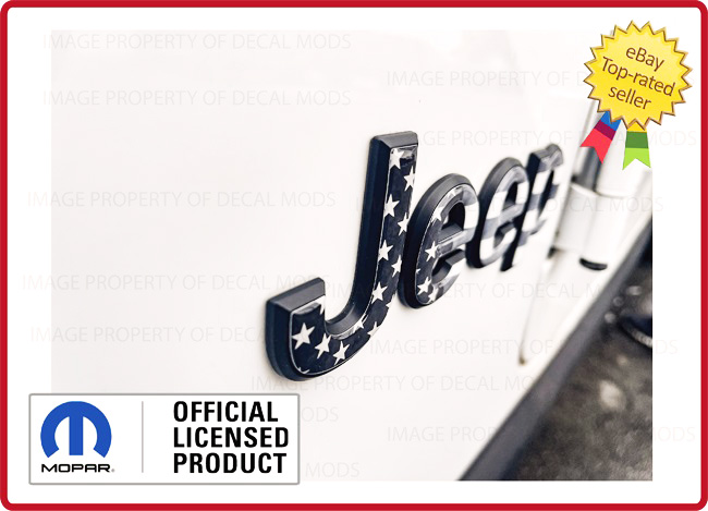 This set includes the following: - Set of 2 - "JEEP" side decal overlays (Part number: FK1O8) - Decals are in the color: 3D Raised, Black and White American Flag USA - Installation Instructions |