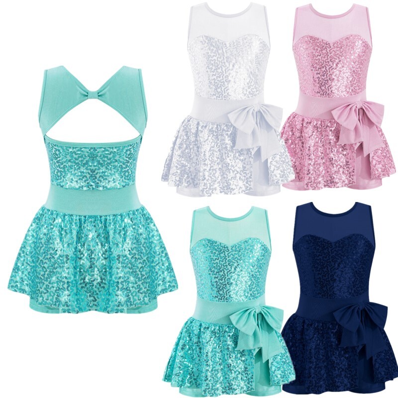 Leotard dress is made of polyester, mesh and sequins material, hand wash.