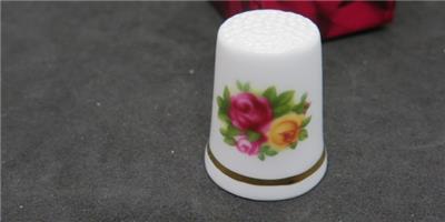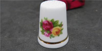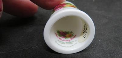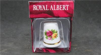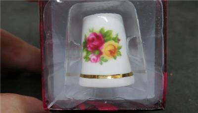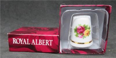 In original box. The product sticker says Royal Doulton, the box and hallmark are Royal Albert. From the Old Country Roses collection comes this lovely bone china thimble. Item number OCRGWS 00077, original MSRP $16.50.