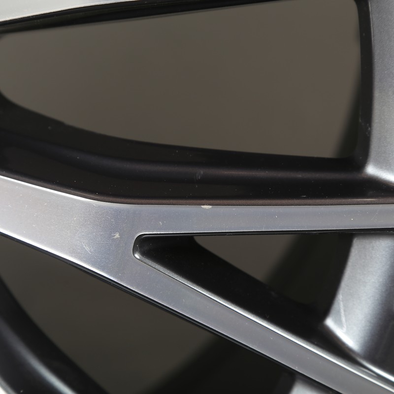 The rims are in very good condition with no damage. The tires are new. One rim has minimal signs of wear. (see photo)