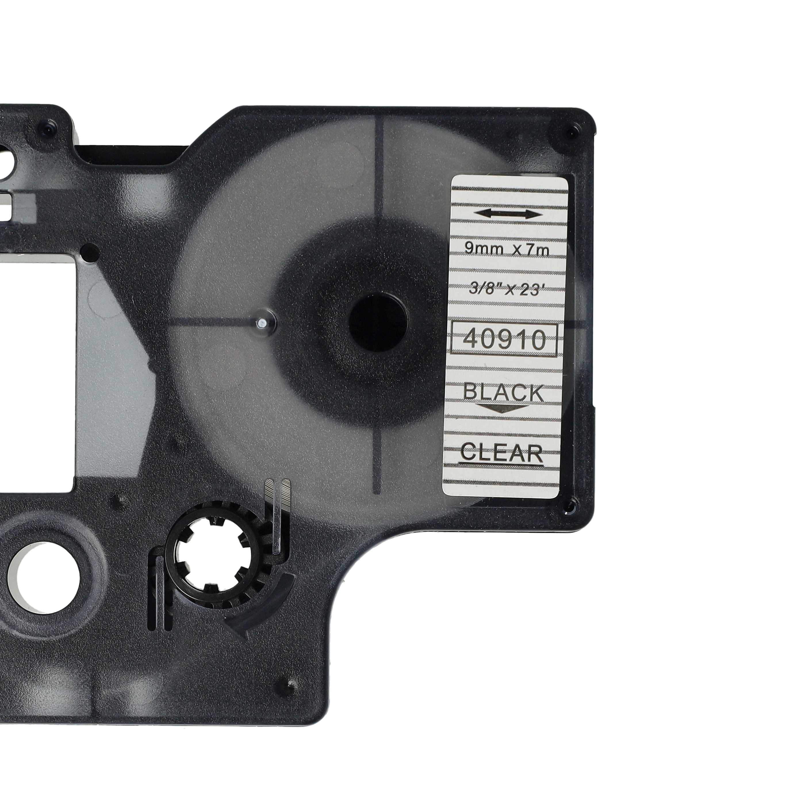 vhbw 1x cartuccia per Dymo 5000, 2000, 5500, 1000+, 1000, 4500, 3500 etichettatrice, dispositivo di etichettatura - 9 mm, nero su trasparente