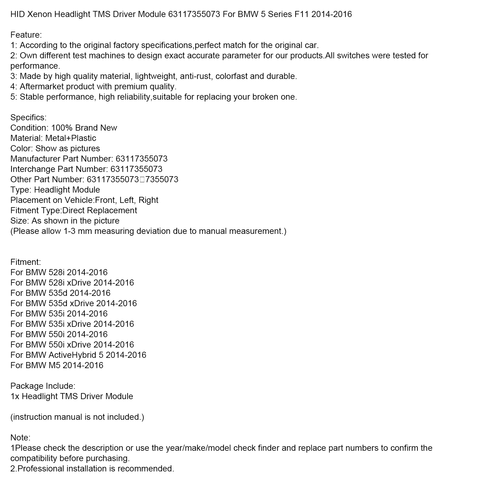 HID Xenon Headlight TMS Driver Module 63117355073 For BMW 5 Series F11 2014-2016
