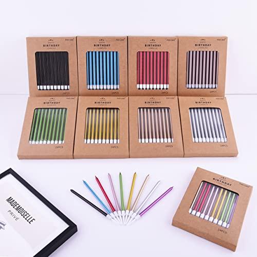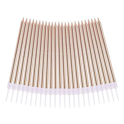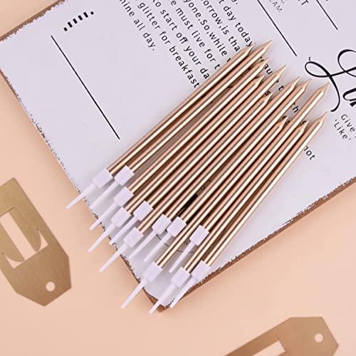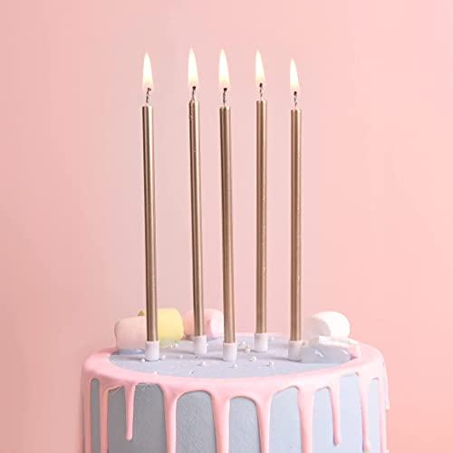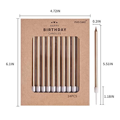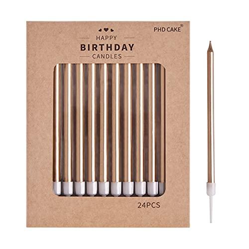 PHD CAKE 24-Count Champagne Long Thin Metallic Birthday Candles, Cake Candles,