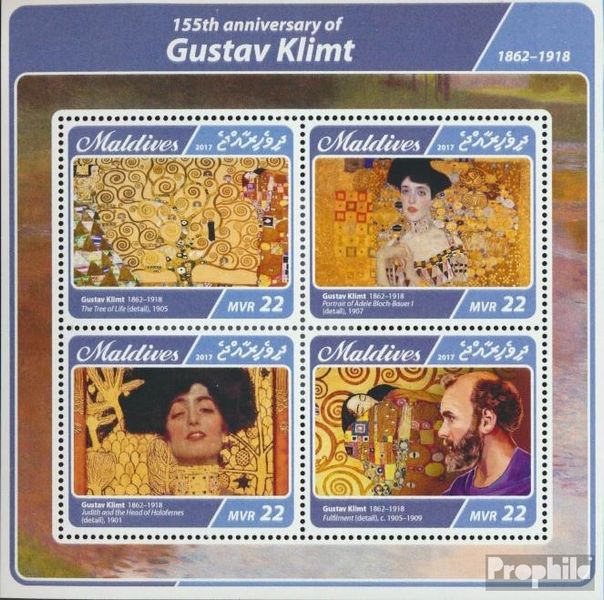 Francobolli Maldive 6863-6866 Minifoglio (completa Edizione) MNH 2017 Gustav Klimt Prodotto: Francobolli Territorio: Maldive Occasione dell'uscita: 2017 Gustav Klimt Titolo: 6863-6866 Minifoglio (completa Edizione) numeri di catalogo: 6863 Annata: 2017 Condition: MNH