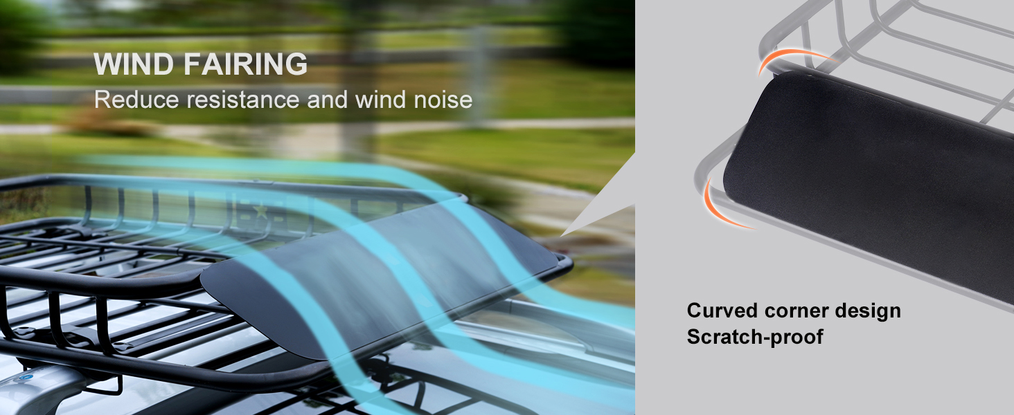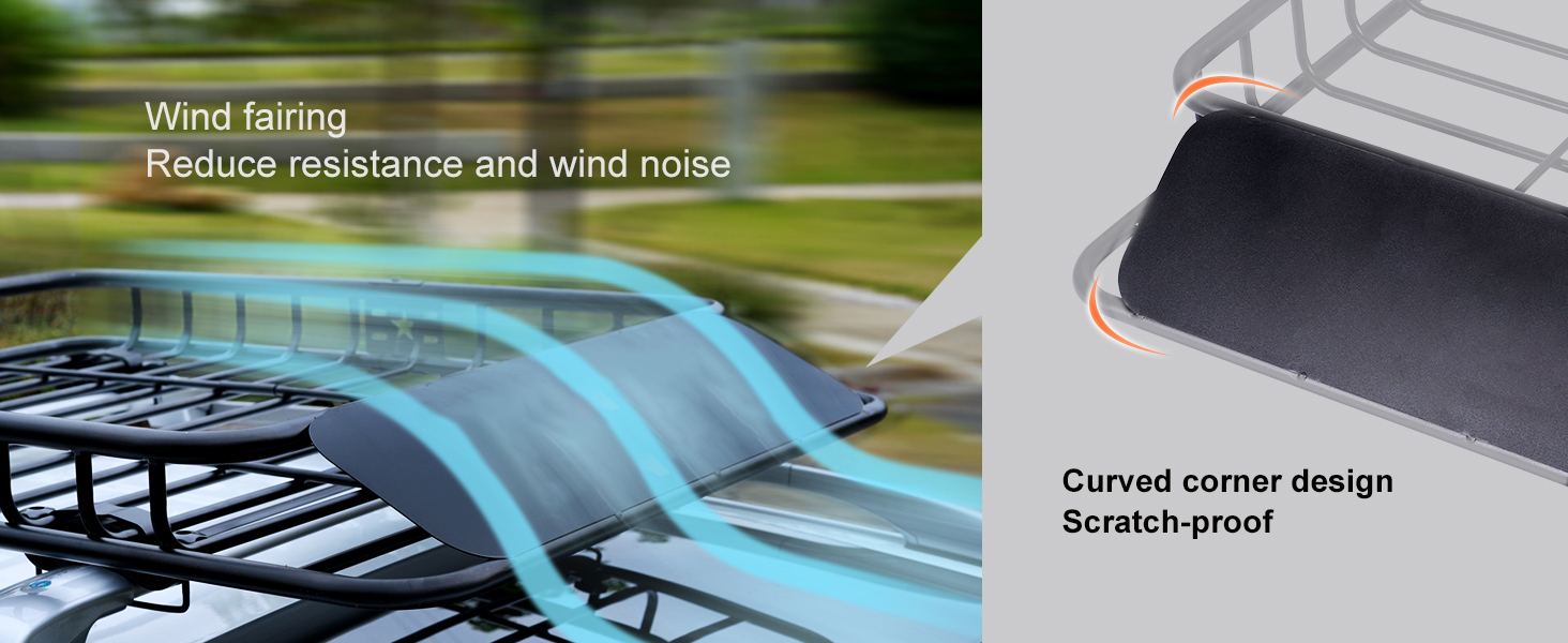 - Streamlined Structure: The roof cargo rack features a wind deflector at the front to minimize drag and noise caused by airflow. Its basket incorporates rounded edges to prevent damage and reduce the risk of injuries during loading and unloading.