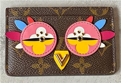 Authentic Louis Vuitton Monogram Lovely Birds Owl Card Holder Wallet. Used in good clean condition. Some wear on the leather owl as shown in photos. Some wear/rubbing on binding. Date code SP4126.