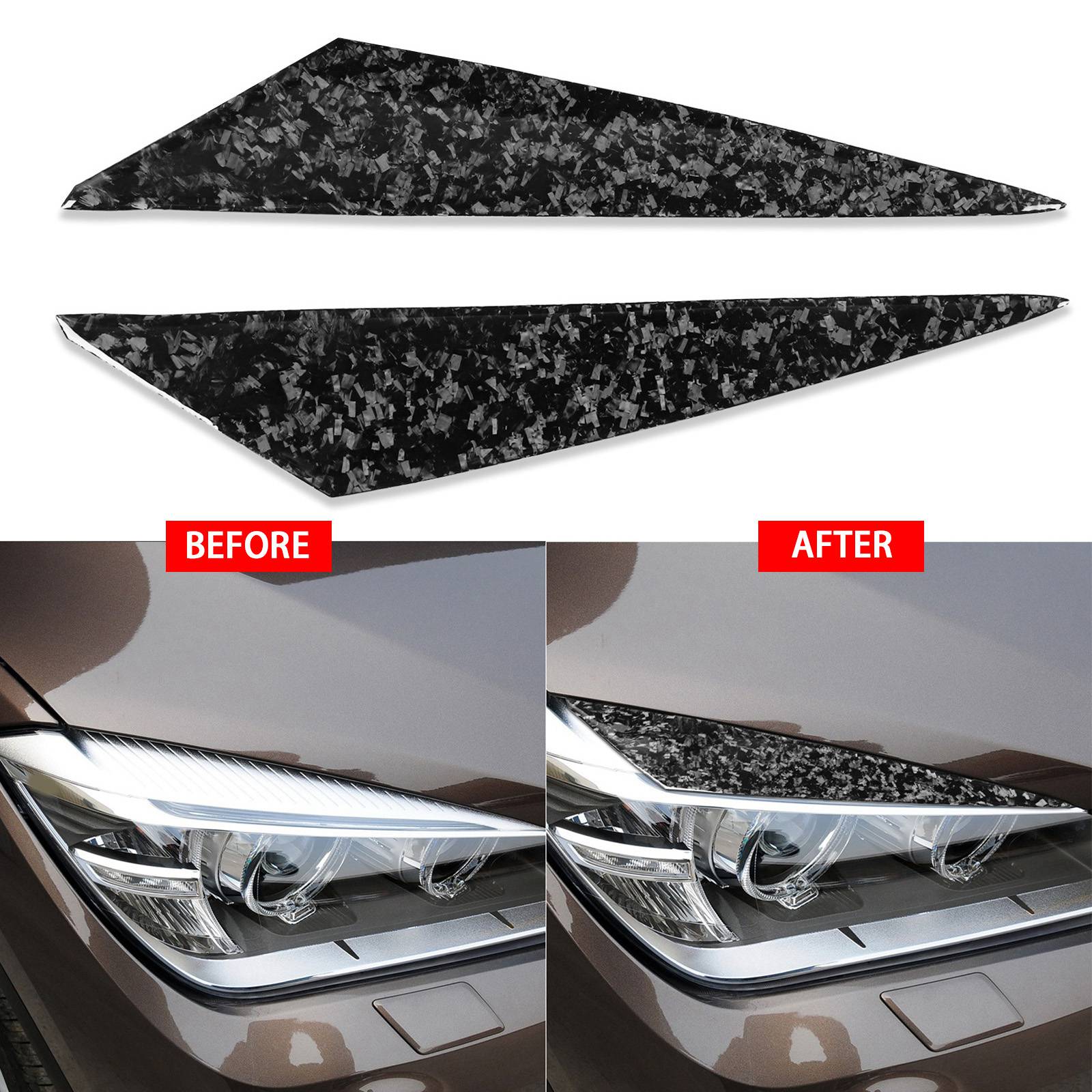 2pcs/Set Forged Carbon Fiber Front Headlight Eyebrow Eyelid Cover Trim