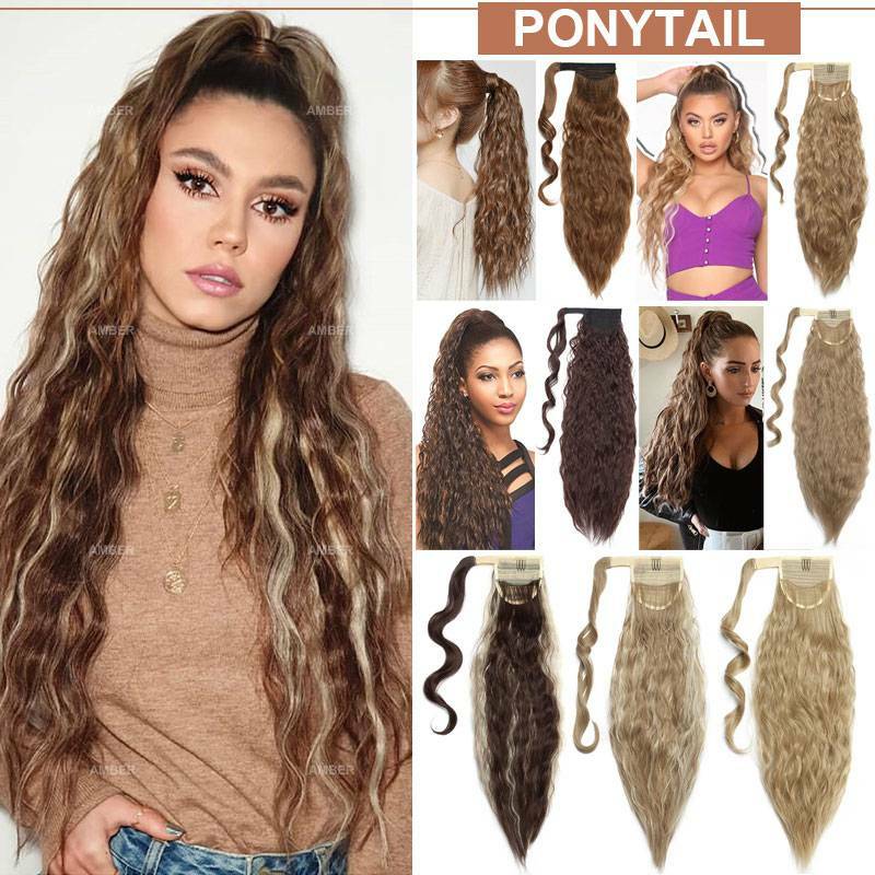Curly Thick Ponytail Clip In Extensions Hair Wrap Pony Tail Mimic-Human Natural |
