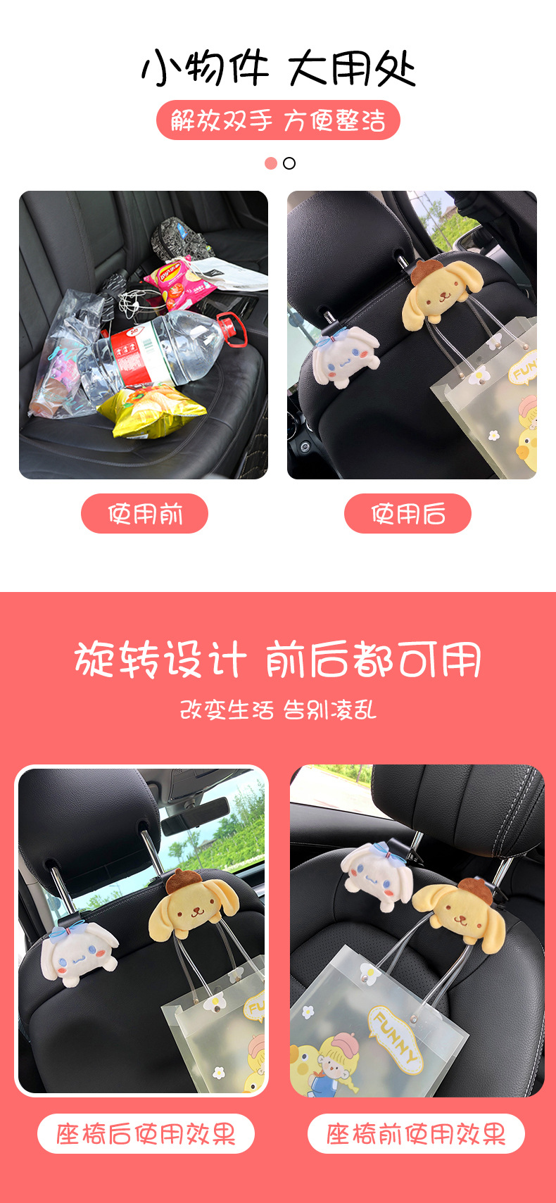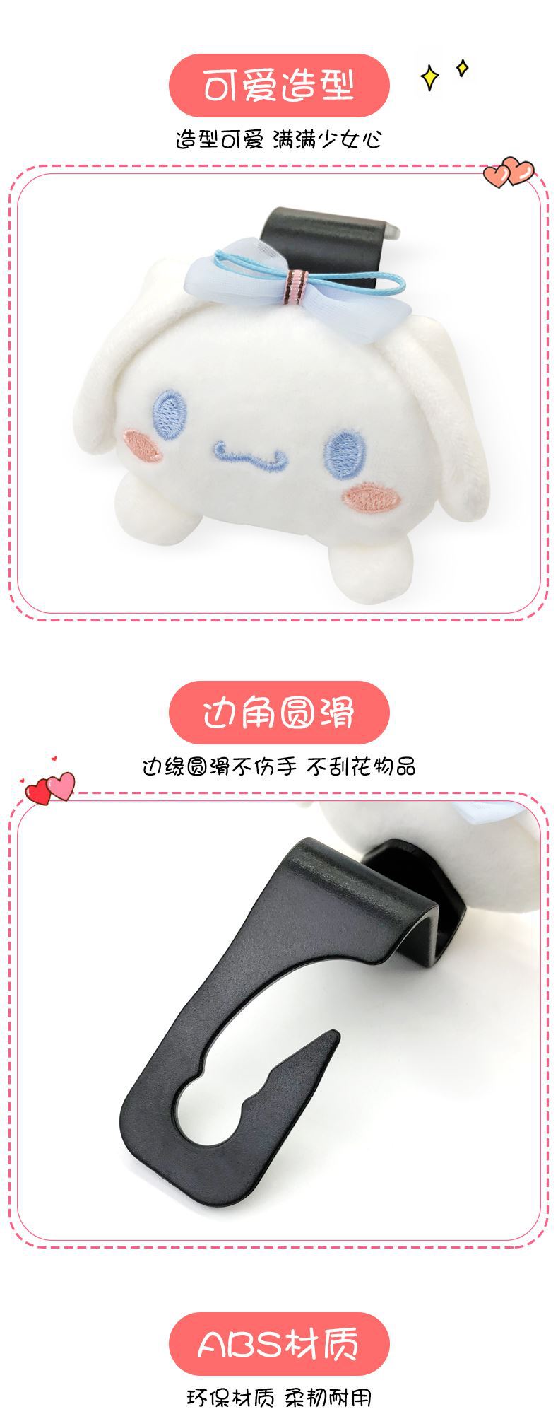Cinnamoroll Plush Car Seat Headrest Hook Auto Back Seat Holder Car Accessories