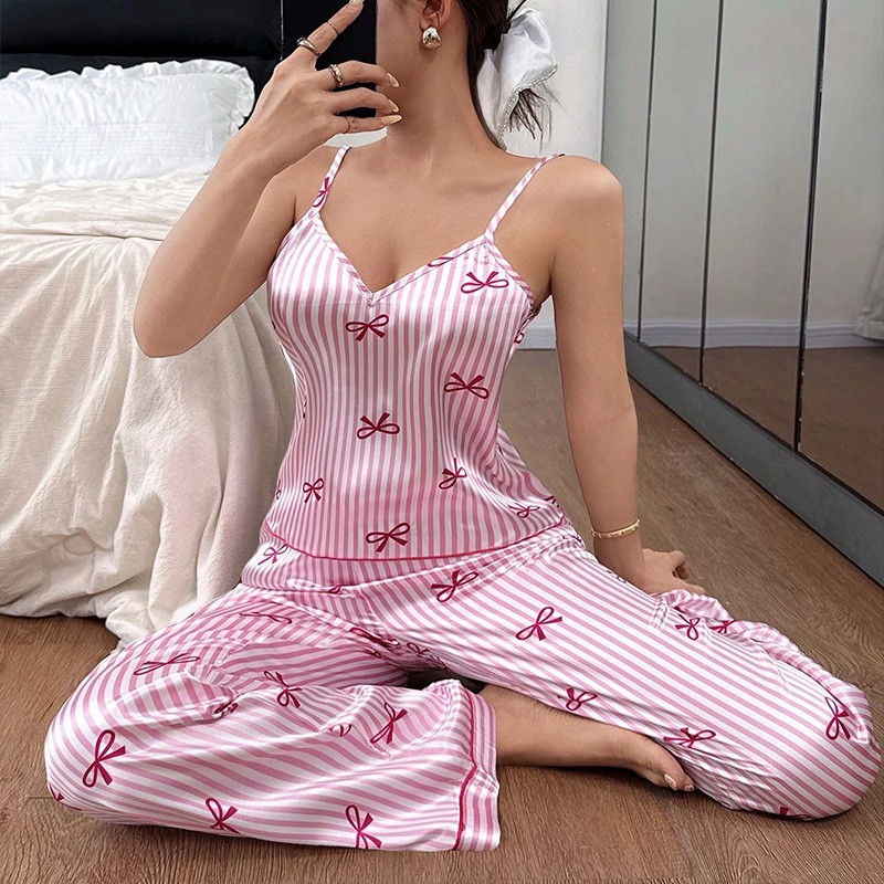 Women's Short Sleeve Silk Pajamas Set Print Satin Sleepwear Homewear Nightwear