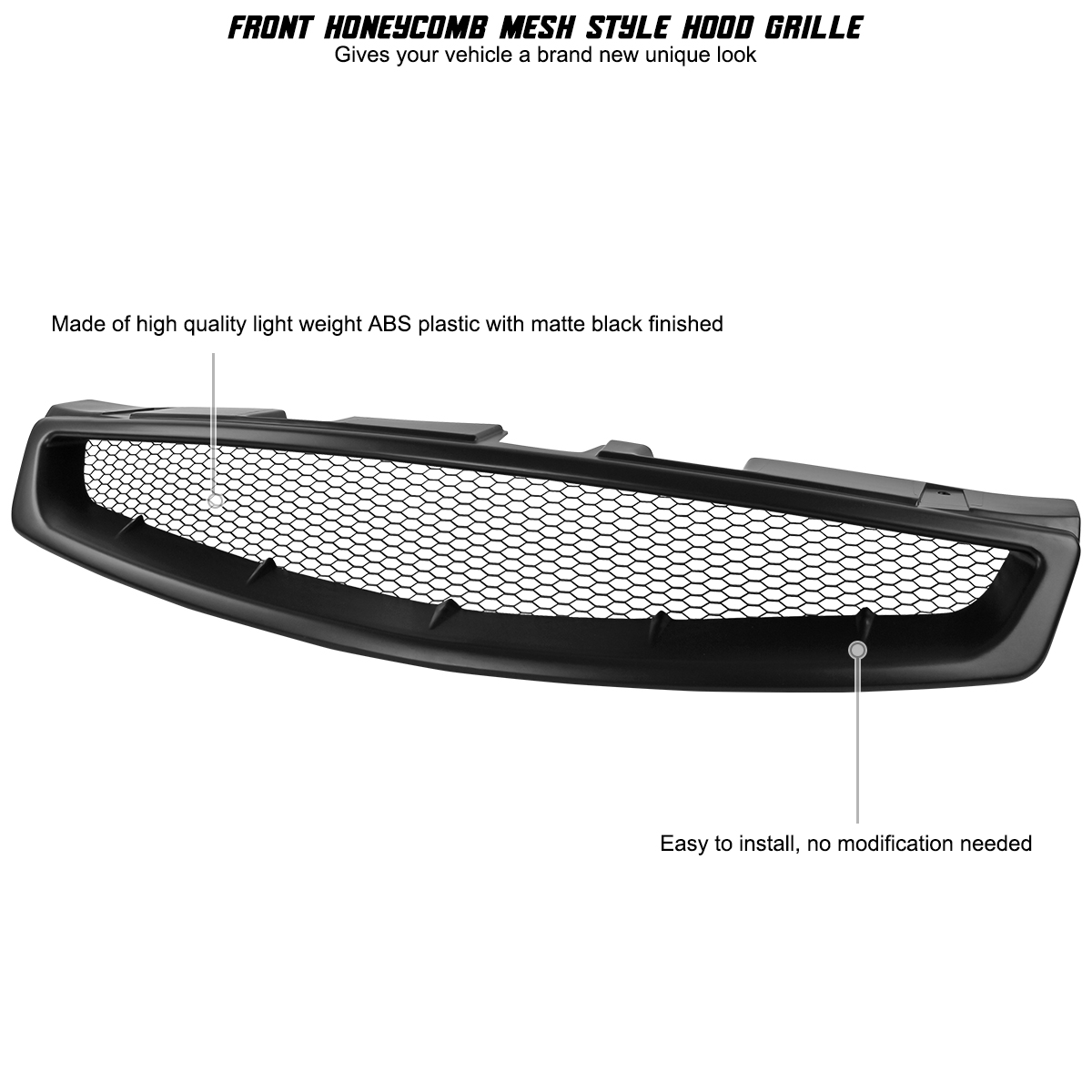 Hood Grille Fits 2003-2007 Infiniti G35 2Dr Coupe Black ABS Front Bumper Mesh