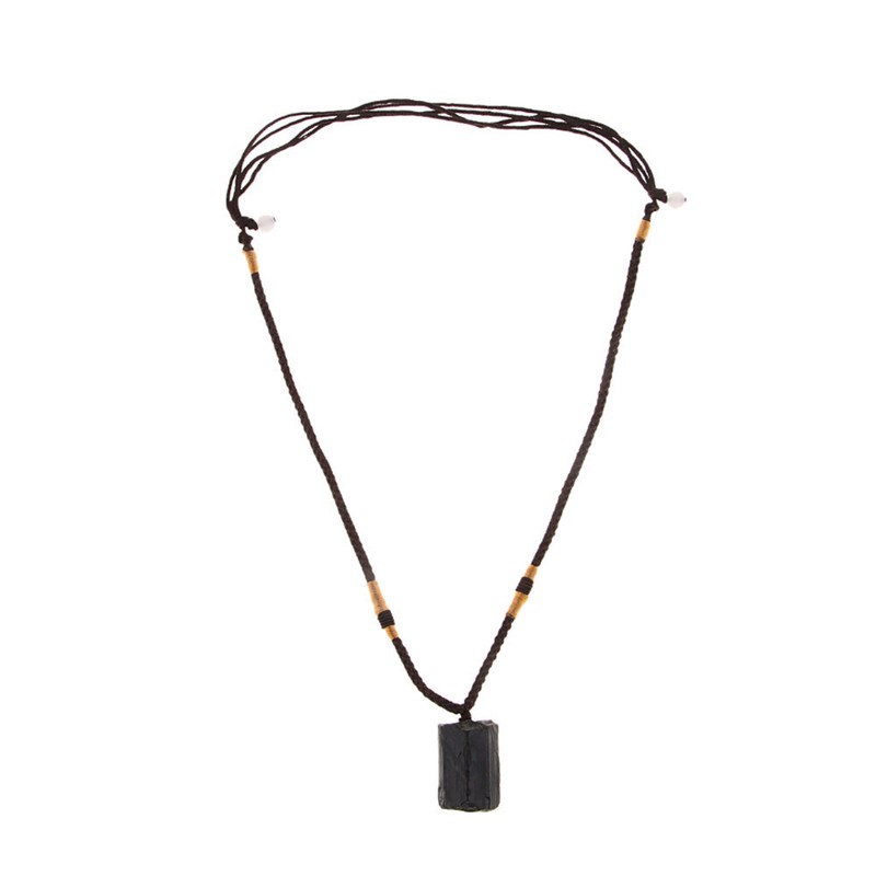 Women&Men Black Natural Tourmaline Stone Pendant Necklace Crystal Gem Specimen