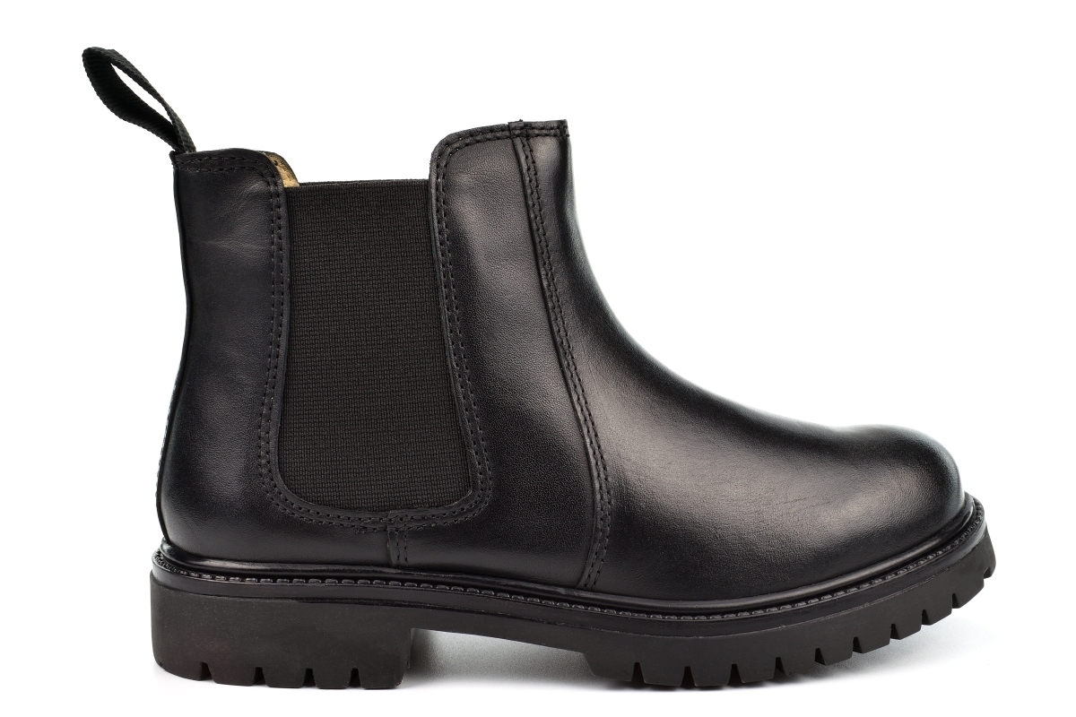 - Girls/boys Chelsea boots - Twin gusset ankle boots - Real leather upper - Ideal as school boots or casuals - Pull on boots with tab on back - Rugged out sole