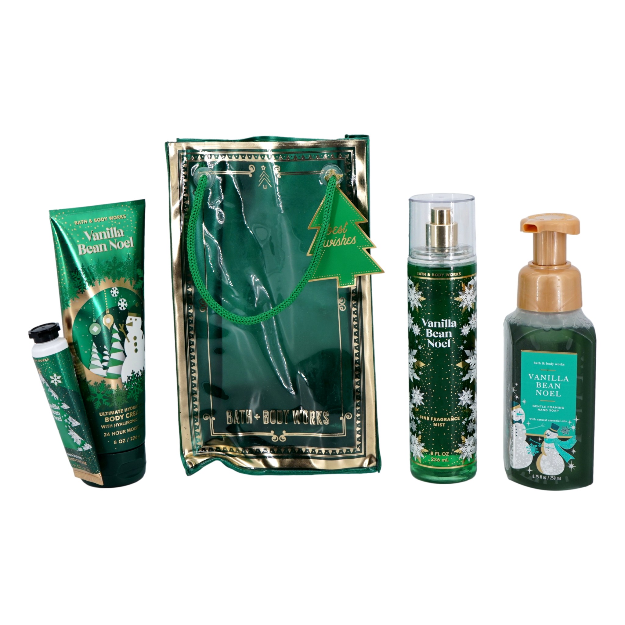 - Bath & Body Works VANILLA BEAN NOEL Gift Bag Set - A wintry sweet treat of fresh vanilla bean, sugar cookies, warm caramel, whipped cream and snow-kissed musk