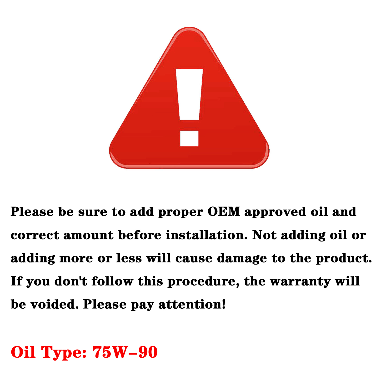 PROPER OEM APPROVED OIL (TYPE) AND CORRECT AMOUNT OF OIL MUST BE ADDED UPON INSTALLATION.
