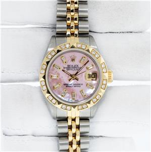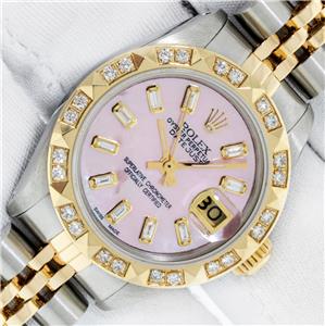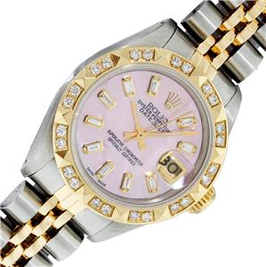 Custom Pink Mother of Pearl Dial Set with Added Genuine Baguette Diamond Markers.